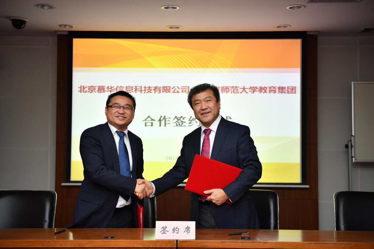 12月19日,慕华教育旗下学堂在线与北京师范大学教育集团签署合作协议,成立北京京师慕华教育科技有限公司。新成立的京师慕华将依托清华大学和北京师范大学各自的产学研优势,利用现代信息技术手段全面服务教育教学。清华大学党委常委、副校长杨斌,北京师范大学党委常委、副校长王守军,清华控股党委副书记、总裁、慕华教育董事长聂风华,清华控股副总裁、学堂在线董事长范新,北师大资产经营公司董事长张强等出席签约仪式。