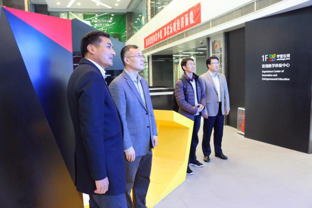 陈伟陪同客人参观学堂在线双创教学体验中心
